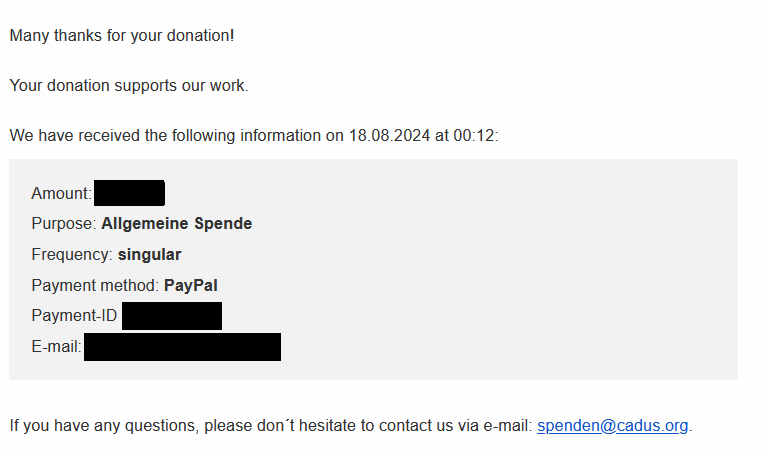 - I have donated my earnings (such as they are!!!!) again. To be completely honest, earnings have been tiny, so I have been supplementing my donations a bit. Still, thank you to everyone who has purchased anything and thus contributed to my donations. This donation goes to Cadus.